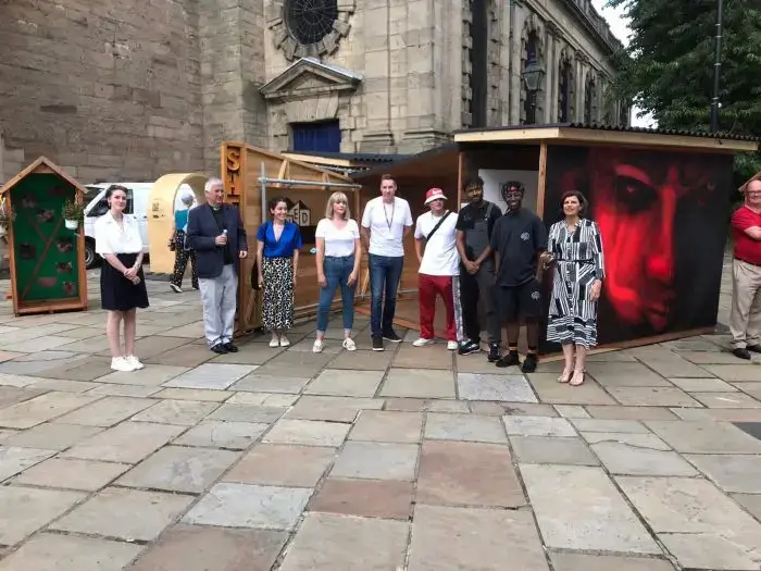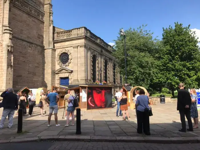 Work created by dozens of young Derby artists took centre stage in an innovative exhibition that went live outside the city’s cathedral in the summer, involving nearly three hundred young people from the city of Derby who created murals, videos, and audio installations. These works addressed issues of exclusion and drew on the influence of contemporary issues such as the Black Lives Matter movement, mental health, education reform, employment opportunities, bullying, barriers to opportunity, and LGBTQ+ rights.