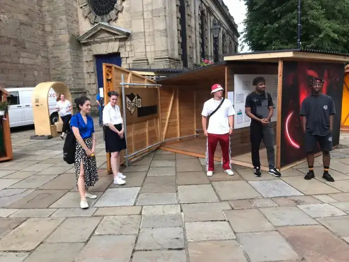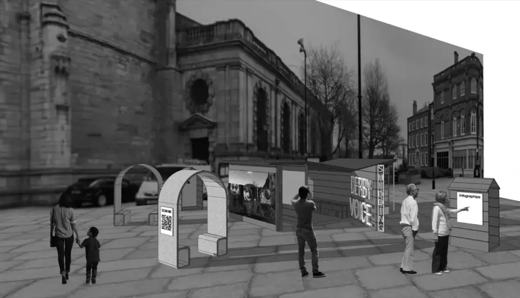 Working with local organisations, the S.H.E.D team, along with staff and students from the University’s Interior Design programme, designed the installation space for Derby Voice, just as they played a part in developing the S.H.E.D. This was a flat-pack shed that could be easily transported and constructed as a venue for various uses, such as creative workshops and public consultations.