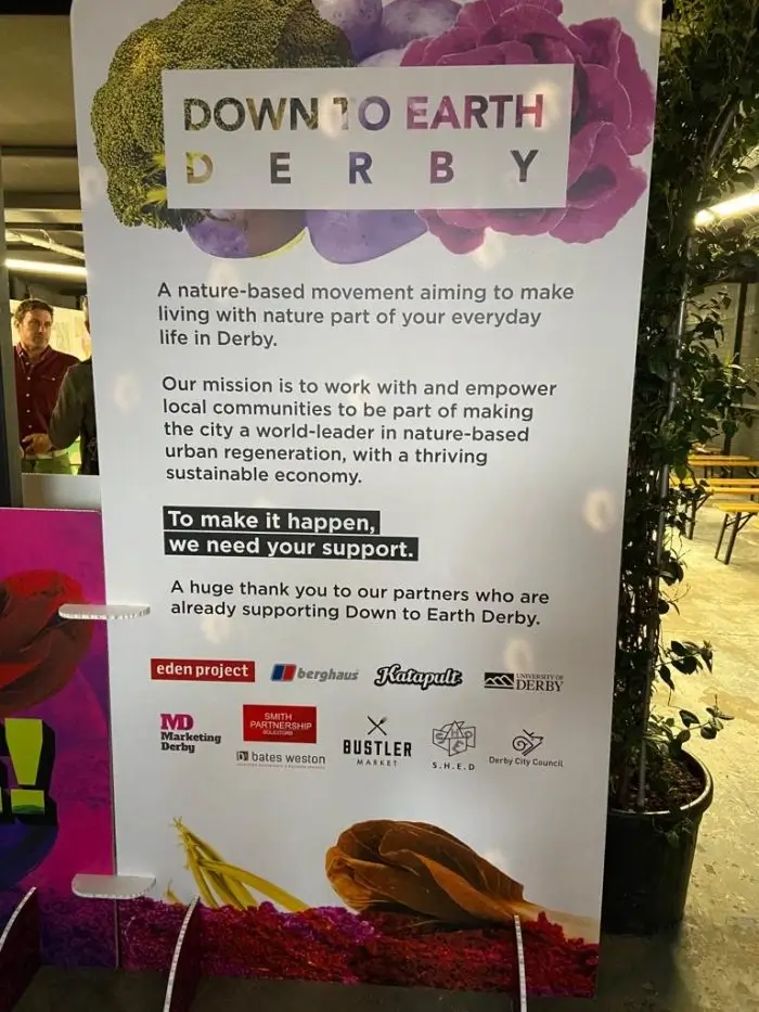 Taking place on 19th of April 2022 at the Bustler Market, this event championed regenerative design as a powerful agent of change for the city of Derby, and featured talks, and discussions with team Down to Earth; Sir Tim Smit, Executive Chairman for the Eden Project and his team; Derby City Council; University of Derby representatives; team Katapult; and the CEO of the Heritage Fund Committee, to help address the biggest challenge of our time, ie. climate change within our city.