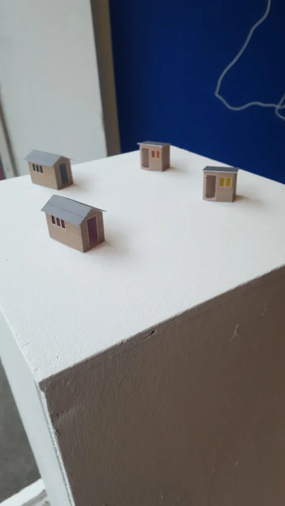 Working with Belfast based Light Installation Artist, Declan Proctor they spent time researching into the materiality of sheds and its relationship to light. For Jones, it raised questions about scale and form, positionality of S.H.E.D – the role of being inside and outside of spaces and how the notion of a shed as an object was triggering public discourse and engagement and in turn it was becoming a research-generation site of and for itself.